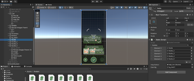 In the recipe details page, I used a Scroll View and placed everything inside the "Content" section. I also created a "Complete Cooking" button, which, when clicked, displays a popup asking the user whether they want to remove the ingredients from their inventory. The user can either click "Yes" to confirm or "No" to cancel, and if they choose either option, they are redirected to the inventory page. Since I don't want the popup to scroll with the content, I created a separate canvas to place it in a fixed position.